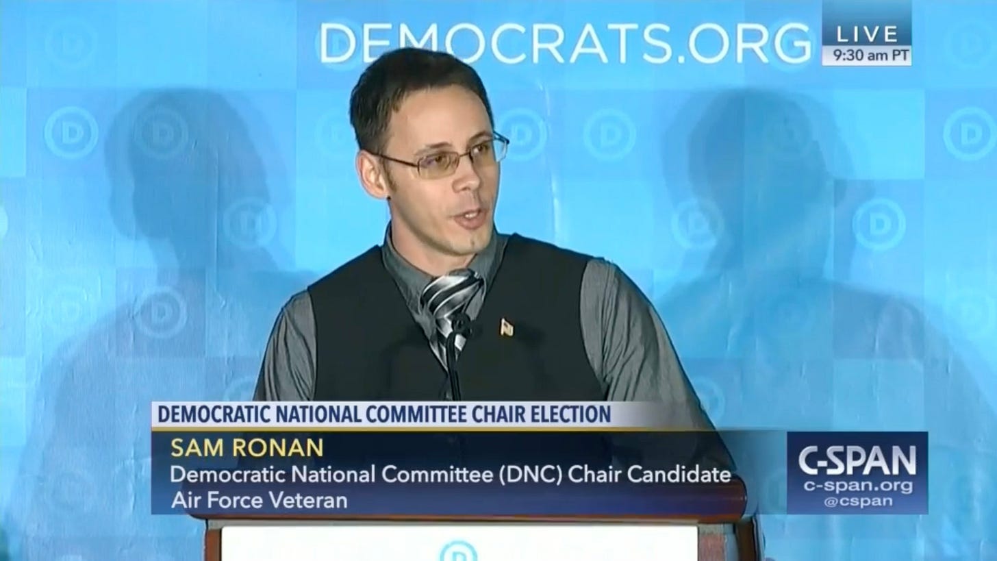 At a recent endorsement meeting held by the Madison County GOP, Ronan was asked directly whether he was the same Sam Ronan who ran for DNC chair.